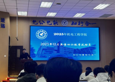 为帮助2024级学生明确备考方向,筑牢诚信应考底线,切实做好英语四六级考试与期中考试准备工作,2025年10月12日,我院在机械馆101报告厅召开2024级英语四六级考试暨期中考试动员大会。2024级辅导员王兰梦、赵重光结合学生实际情况开展动员宣讲。