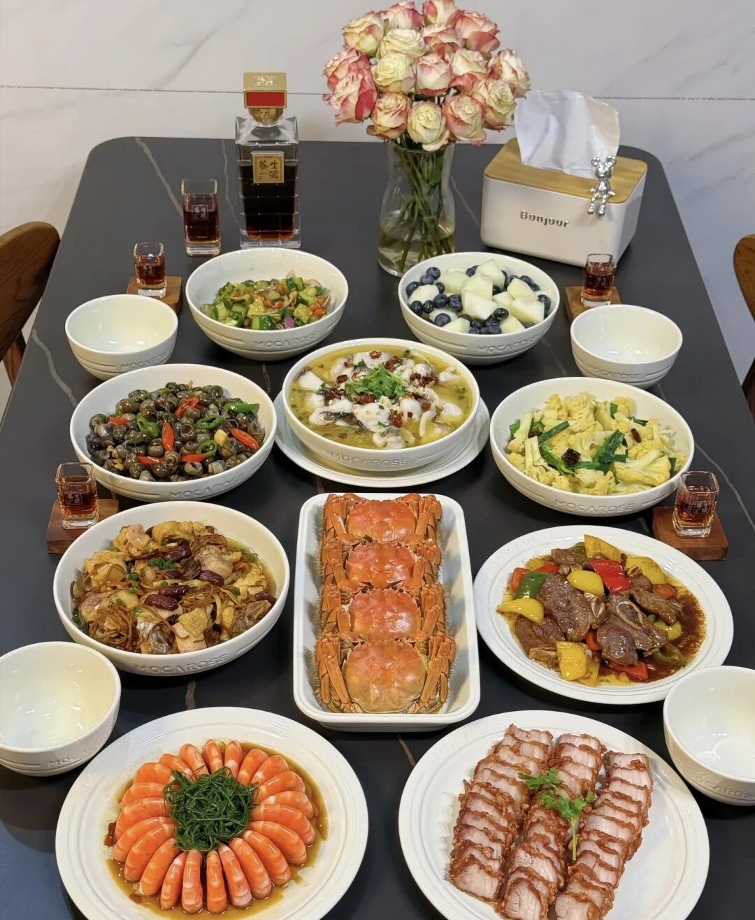 中秋团圆饭,满桌佳肴溢满情。愿这一桌丰盛的菜肴,承载着家人的牵挂与思念;愿每一道美味,都化作团圆的甜意。值此佳节,祝家人平安顺遂,事事圆满,让团圆的温暖岁岁常伴,让幸福的滋味年年绵长,中秋快乐!