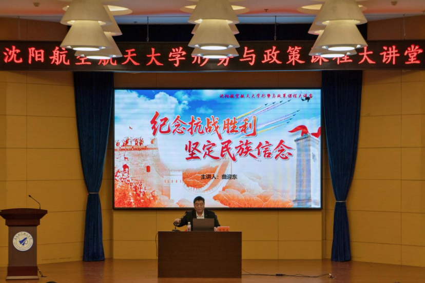 12月11日下午,学校党委常委、副校长曲迎东在图书馆国际学术报告厅,以《纪念抗战胜利 坚定民族信念》为题,为机电工程学院、材料科学与工程学院师生带来了一堂深刻生动的形势与政策专题思政课。