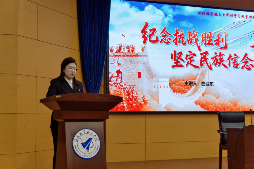 在回望历史、缅怀先烈的基础上,曲迎东紧密结合当前国家发展新形势与学校办学定位,深刻阐释了新时代纪念抗战胜利的核心要义——不仅是铭记历史、珍爱和平,更要从伟大抗战精神中汲取奋进力量,将个人理想追求与国家命运、民族复兴紧密相连。针对两学院的学科特色与专业优势,他勉励广大师生:既要深耕专业领域,扎实筑牢知识根基,持续提升科技创新能力与实践应用水平;更要厚植家国情怀,涵养爱国初心,主动将个人成长融入航空航天事业发展、国家科技自立自强的时代征程,以实际行动为学校高质量发展、为国家建设贡献沈航力量。