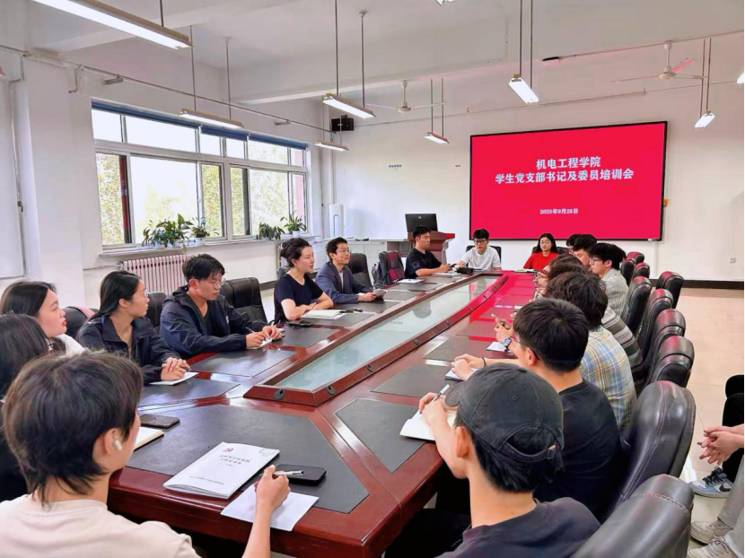 近日,机电工程学院党委组织召开学生党支部书记培训会,专题部署2025年下半年团组织推优入党工作。学院党委副书记王欢、专职组织员赵飞、各学生党支部书记及委员、学院团委相关部门学生骨干参加会议。